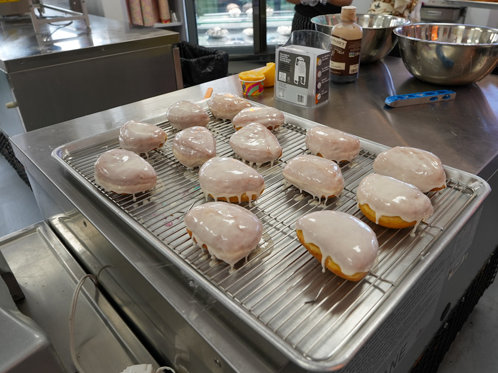 Danielle knew that she didn’t want to make typical donuts. She says she dreamt one night about semi-circle moons and woke with a clear idea. She would make half-donuts. This dream also aligned with her research and experience of seeing donuts cut in half at meetings and parties.