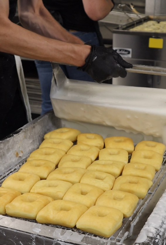 Lehi Bakery relies on a range of Belshaw equipment to support its daily production. The team uses Belshaw Donut Robot® machines to fry square donuts and cake donuts. The bakery also uses Open Kettle Fryers and finishing equipment for icing and glazing.
