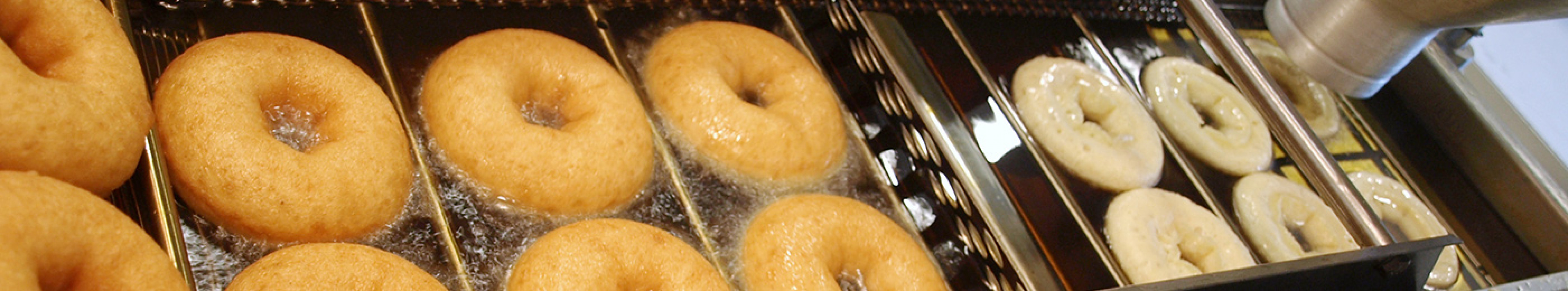 Automatic fryer for standard size donuts, with an option for mini donuts. Capacity 30 dozen/hour, gas heated.