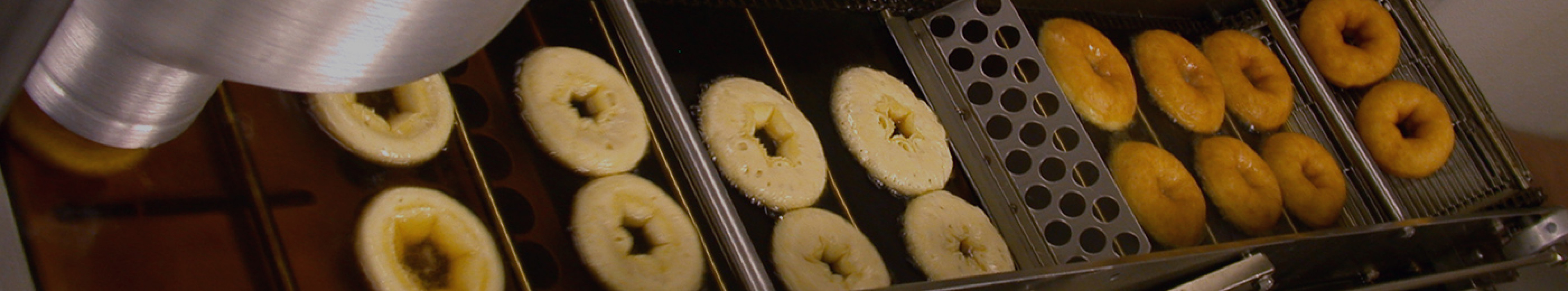 Automatic fryer for standard size donuts, with an option for mini donuts. Capacity 44 dozen/hour, electric.