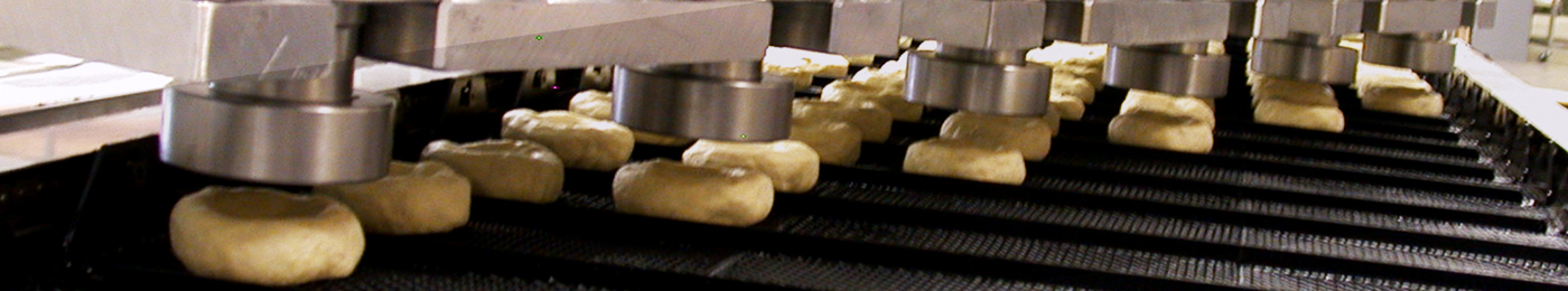Belshaw's own method of extruding yeast-raised donuts on industrial lines. Donuts are formed by a plunger, and deposited directly onto an automated proofer basket. From there they are treated like other raised donuts - proofed and then fried. Note: VMRF deposits ring donuts only, and dough recipe may need to be modified to work with depositor.