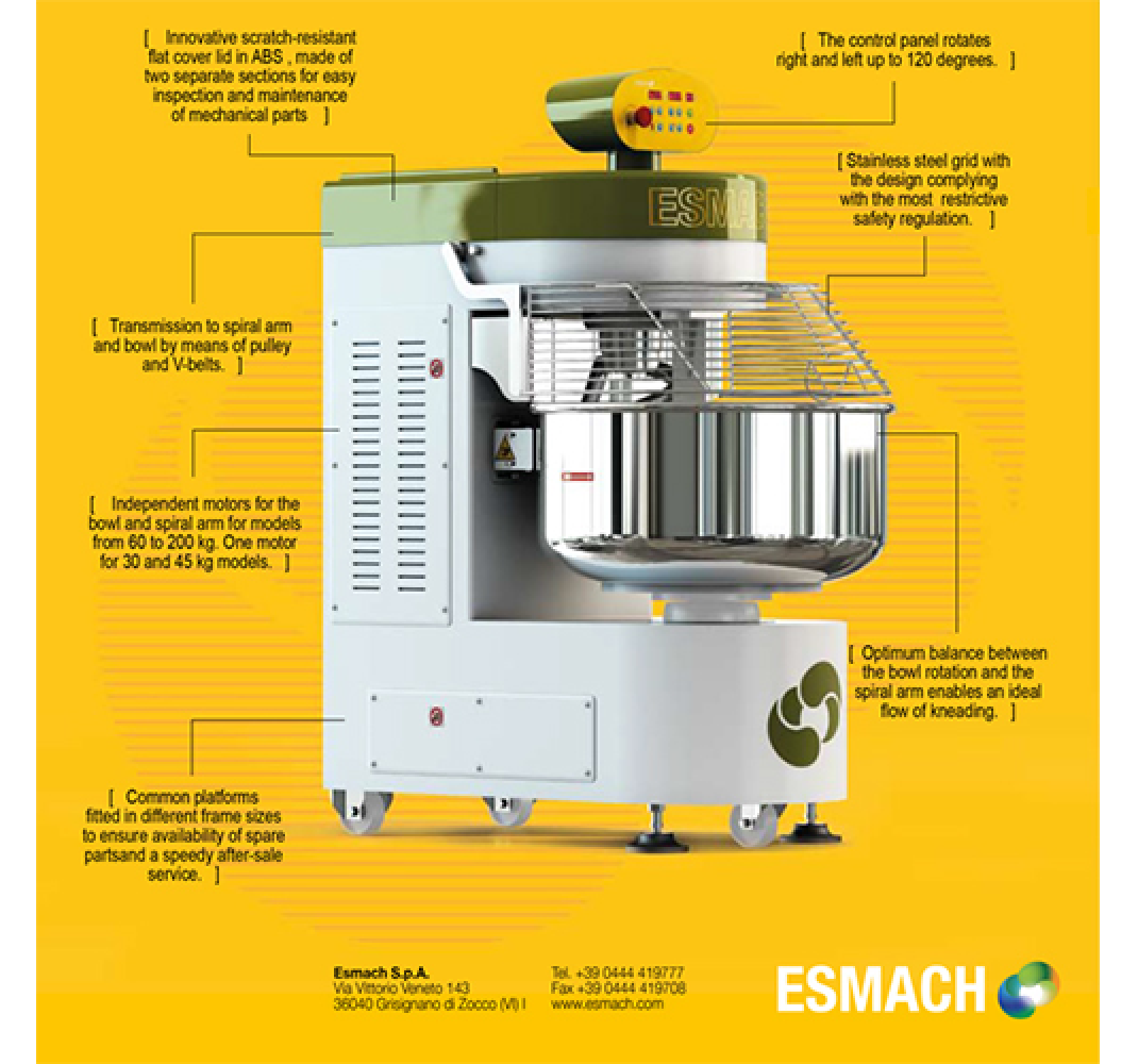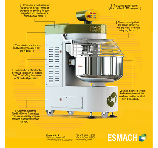 Fixed-bowl spiral mixers, beautifully engineered and crafted by Esmach in Italy.